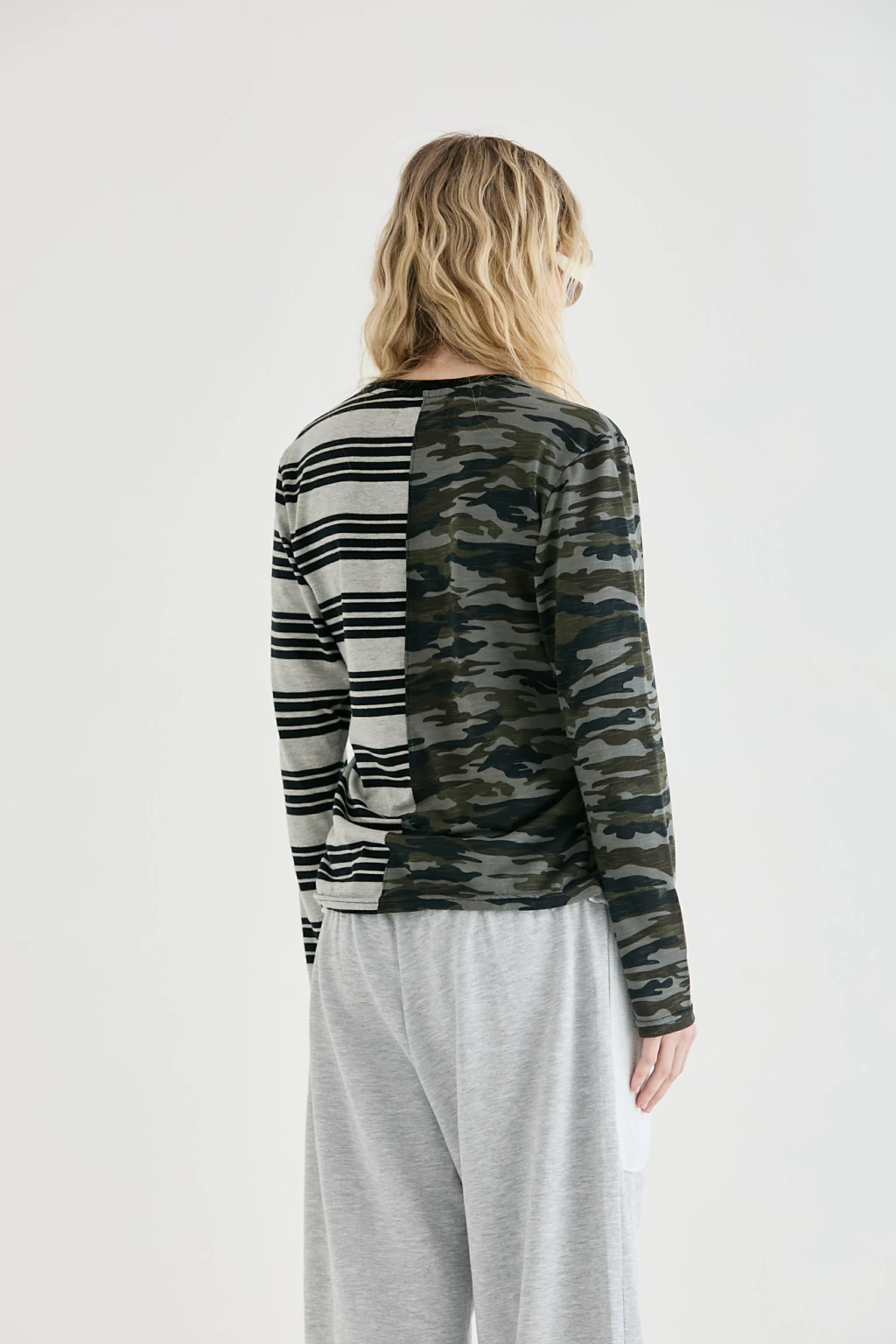 [ Slim-fit long sleeve tee made from two different types of jersey. Black ribbed neckline. ]