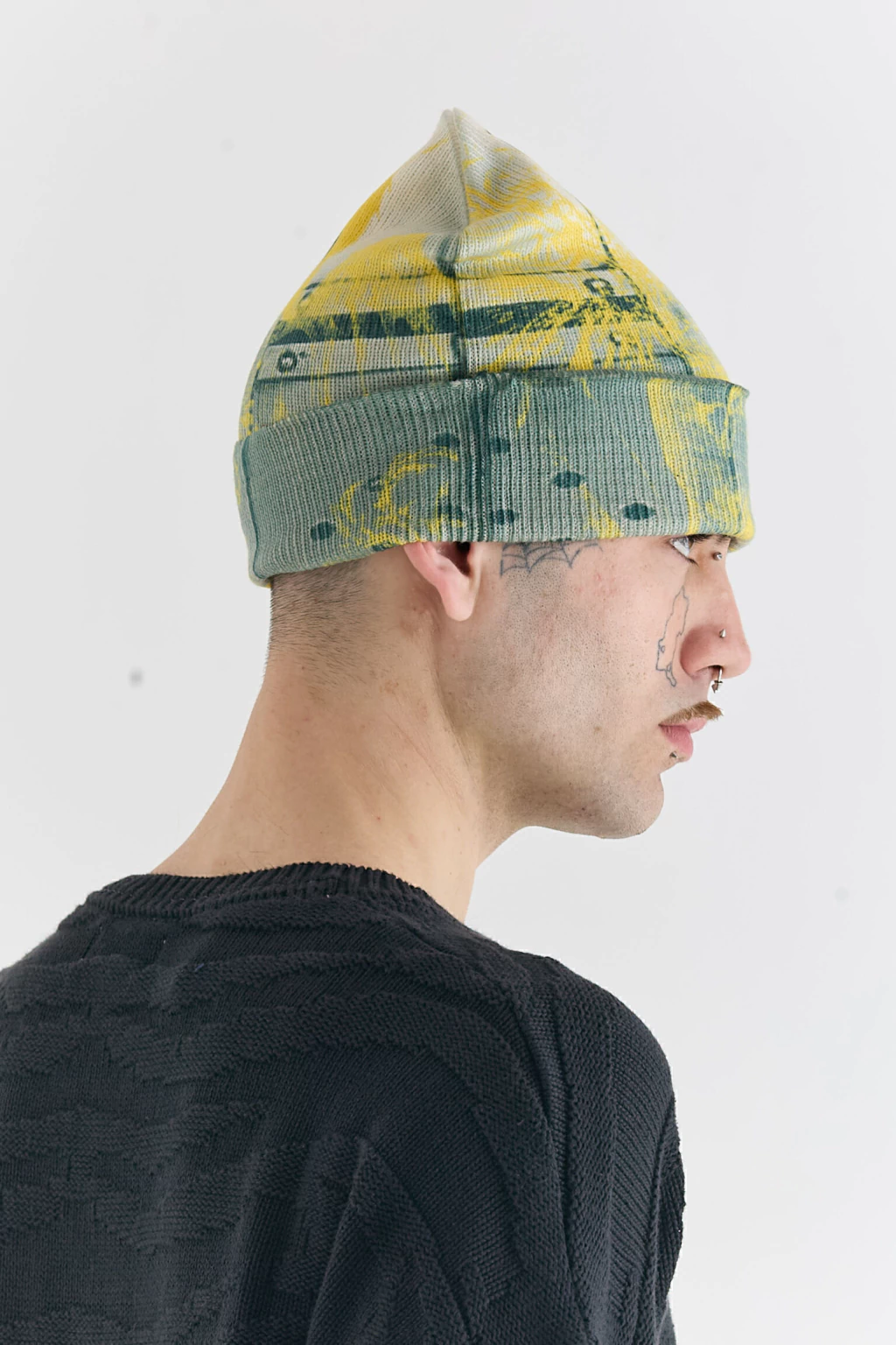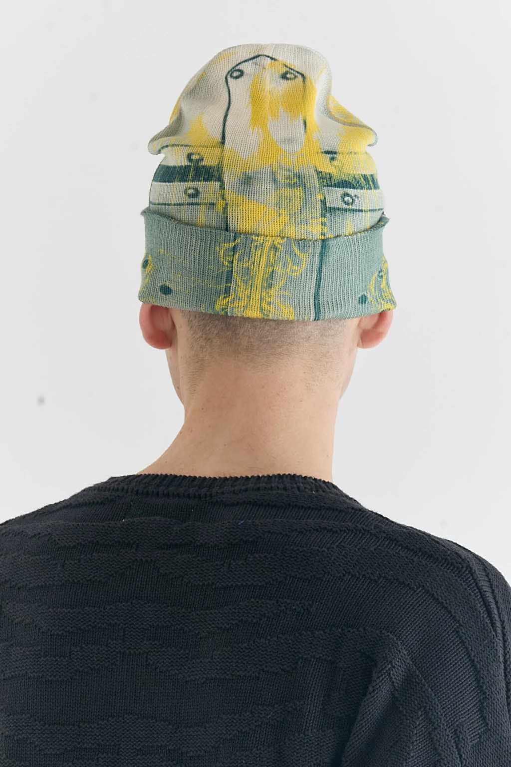 [ Gorro tipo beanie tejido estampado. Cuatro estampas diferentes distribuidas entre la parte delanera, trasera y el interior. ]