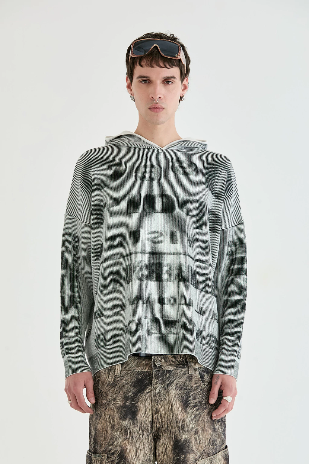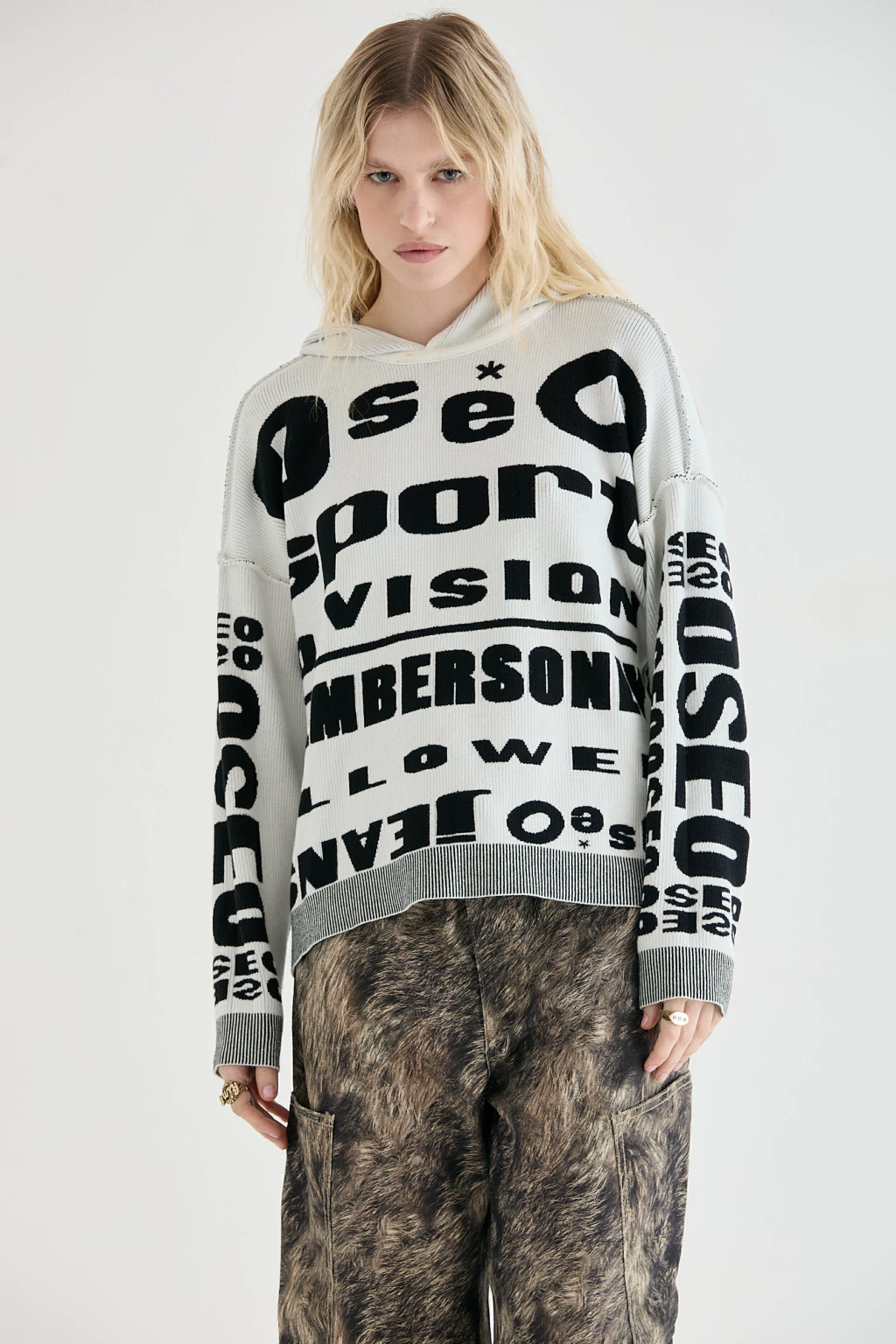 [ Sweater con capucha tejido en jacquard. Puede usarse del lado del reves. ]